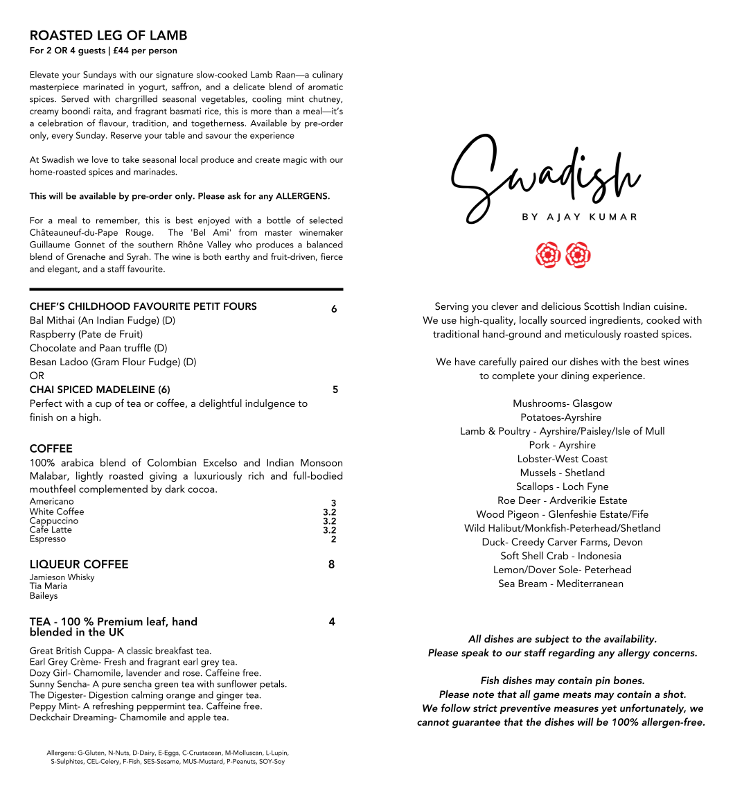Swadish by Ajay Kumar, located at 33 Ingram St, Glasgow, offers an exquisite dining experience that blends contemporary elegance with traditional Indian flavors. Renowned for its innovative menu, Swadish features standout dishes like soft-shell crab and burrata butter chicken, each crafted to perfection. Diners praise the warm, welcoming ambiance and attentive service, with many recounting personal interactions with Chef Ajay Kumar himself, enhancing the communal spirit. The restaurant caters to a diverse clientele, including vegetarians and vegans, ensuring all guests enjoy memorable, flavorful meals. With its commitment to excellence in cuisine and hospitality, Swadish promises a delightful journey through Indian gastronomy.